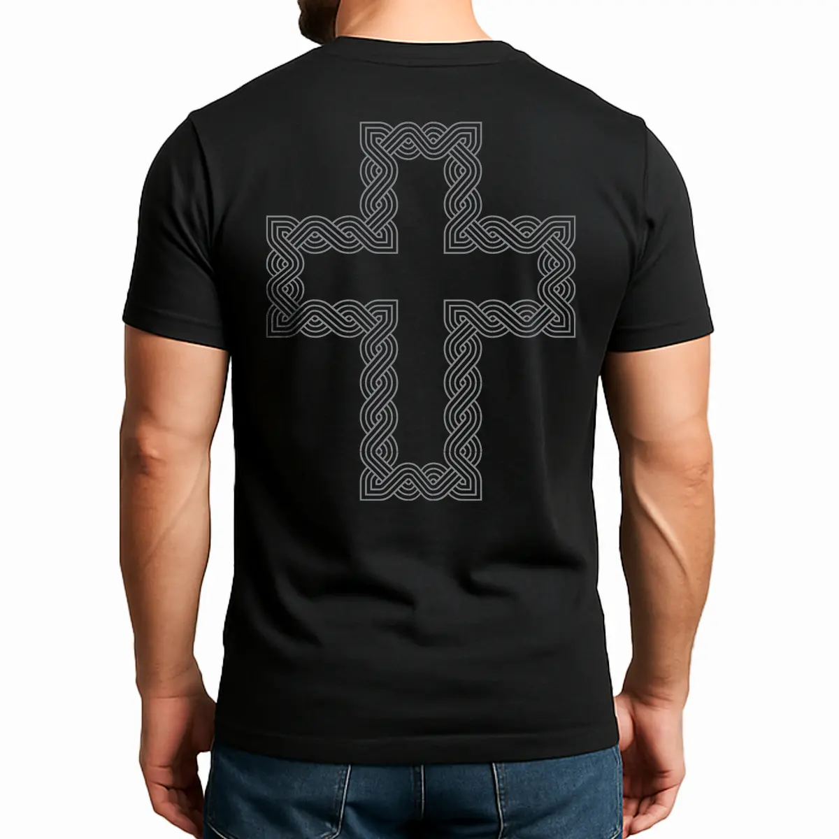 Nema teksta, ali sve govori. Pleter u obliku križa na leđima nije samo dizajn – to je hrvatska povijest u linijama. Jednostavno, snažno i čisto. Za one koji ne trebaju rečenicu da bi rekli što misle.